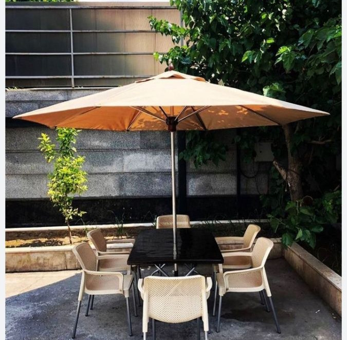 اشغال فضای کمتر: نسبت به سایبانهای پایهدار که پایهها در گوشهها قرار دارند، سایبان پایه وسط فضای کمتری را اشغال میکند و فضای بازتری را در دسترس قرار میدهد.